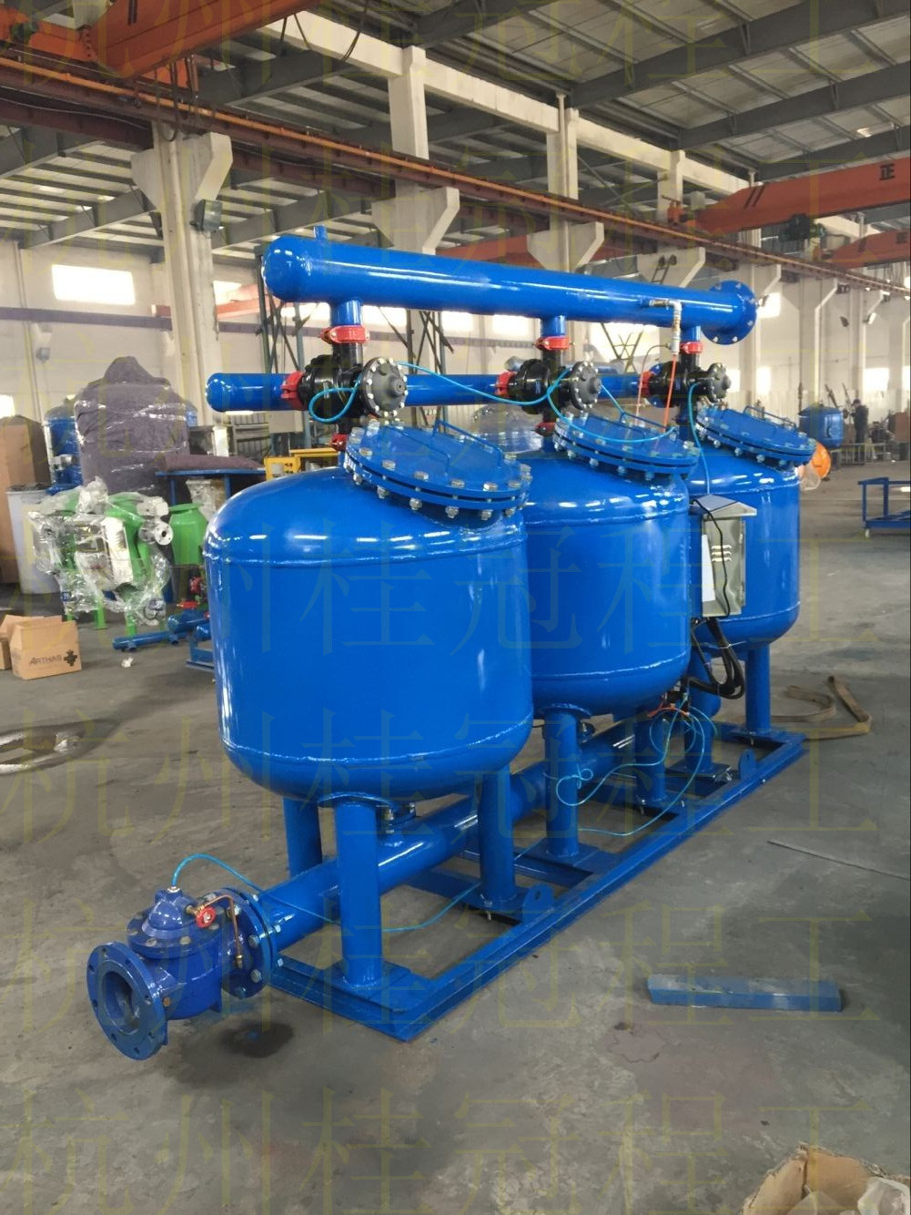 淺層砂過濾器 是利用過濾分離原理研制成功的分離設(shè)備。該設(shè)備有自動和手動兩種控制方式。過濾時,水流自上而下,經(jīng)布水器、濾料層、集水器,完成過濾。